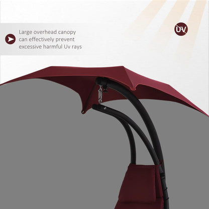 Chaise hamac d'extérieur avec support, coussin rembourré doux, parapluie canopée, rouge vin