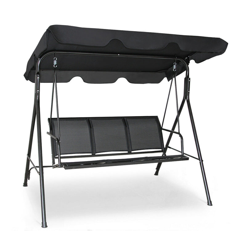 Balançoire d'extérieur pour 3 personnes, balançoire de patio, auvent, noir