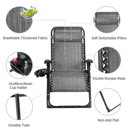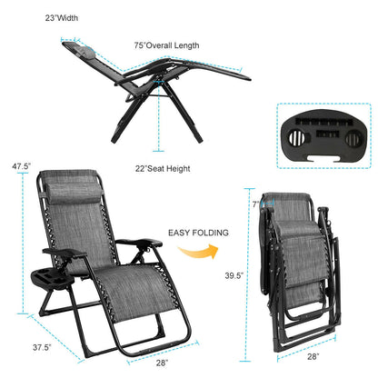 Profitez d'une relaxation ultime avec ce fauteuil de jardin relax extra-large, doté d'un tissu respirant, imperméable et résistant aux UV pour un confort toute l'année. Sa conception ergonomique comprend un dossier réglable, un coussin amovible et un porte-gobelet pratique, tandis que le cadre pliable offre un rangement et un transport faciles avec une capacité de charge robuste de 500 lb.