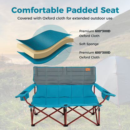 Chaise de camping surdimensionnée, canapé d'amour pliant, bleu