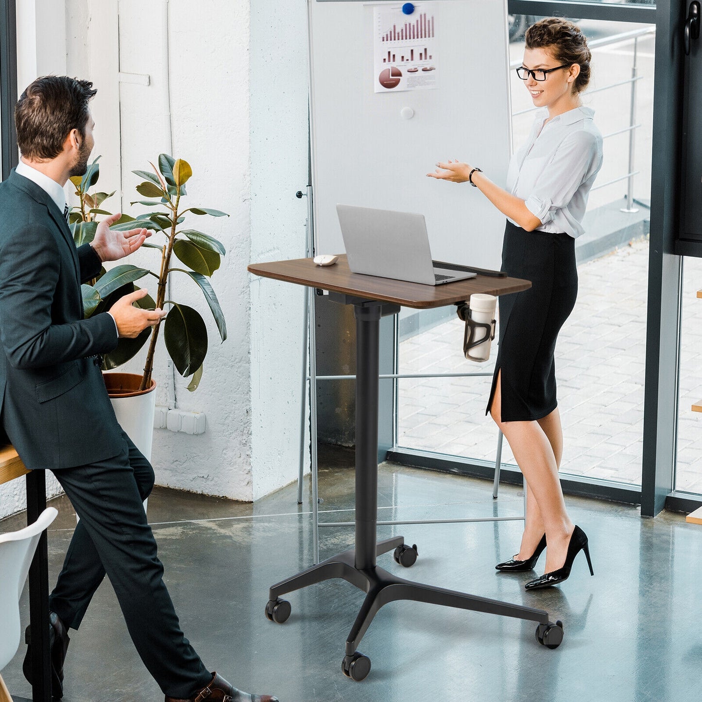 Pneumatic Standing Desk, Anti-Fall Baffle, Cup Holder, Brown