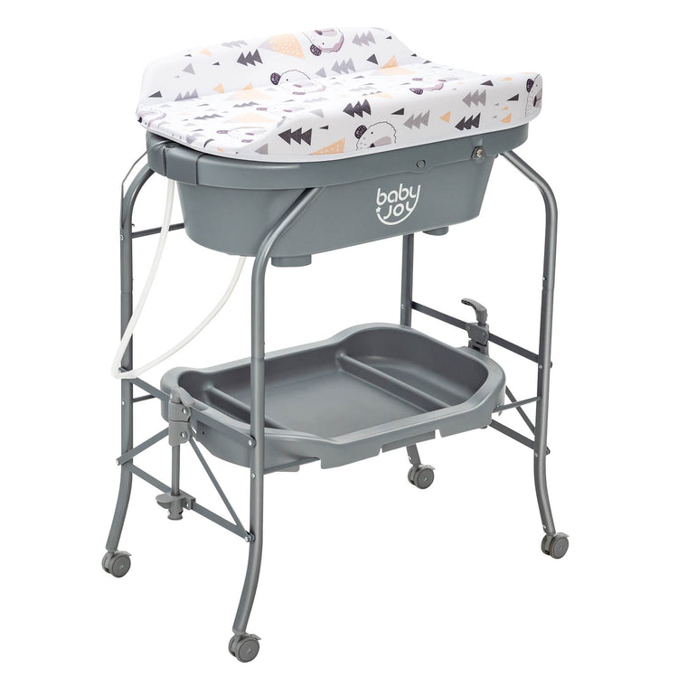 4-in-1 Baby Changing Table: This baby changing table with bathtub features a 4-in-1 design for versatility. You can use it to change diapers or clothes for your baby, let your baby take a shower, massage and nurse your baby, as well as hold baby essentials. And the height is appropriate so that you do not need to bend too much.