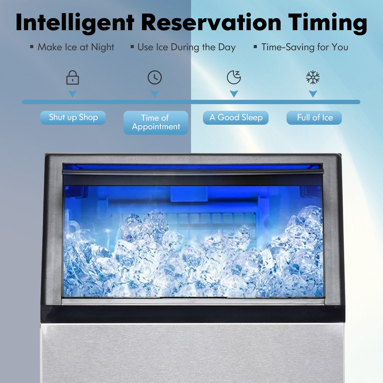 ● Opération facile avec un ensemble complet d'accessoires : le panneau de commande avec les boutons ADD WATER, TIMER, ICE, CLEAN, TIMER CLEAN, etc. vous aidera à contrôler le processus de fabrication de glace. Une pelle à glace pour un transfert pratique des glaçons, une conduite d'eau de 120" avec un connecteur rapide au robinet et un tuyau de 80" pour l'évacuation de l'eau sont tous inclus.