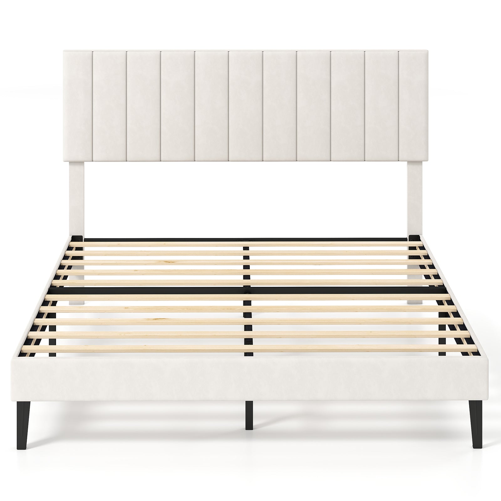 Height Adjustable Headboard: This platform bed features a headboard with 3 height settings (37.5", 40", or 43"), allowing you to easily adjust it to fit mattress thicknesses between 10" and 12". It also customizes the height to suit your personal comfort preferences, either for reading or sleeping.Upholstered Headboard: Covered in velvet/linen fabric and padded with soft sponge, this upholstered bed frame provides a comfortable backrest for relaxing in bed. Its stylish vertical channel design adds a touch of elegance to your bedroom decorations