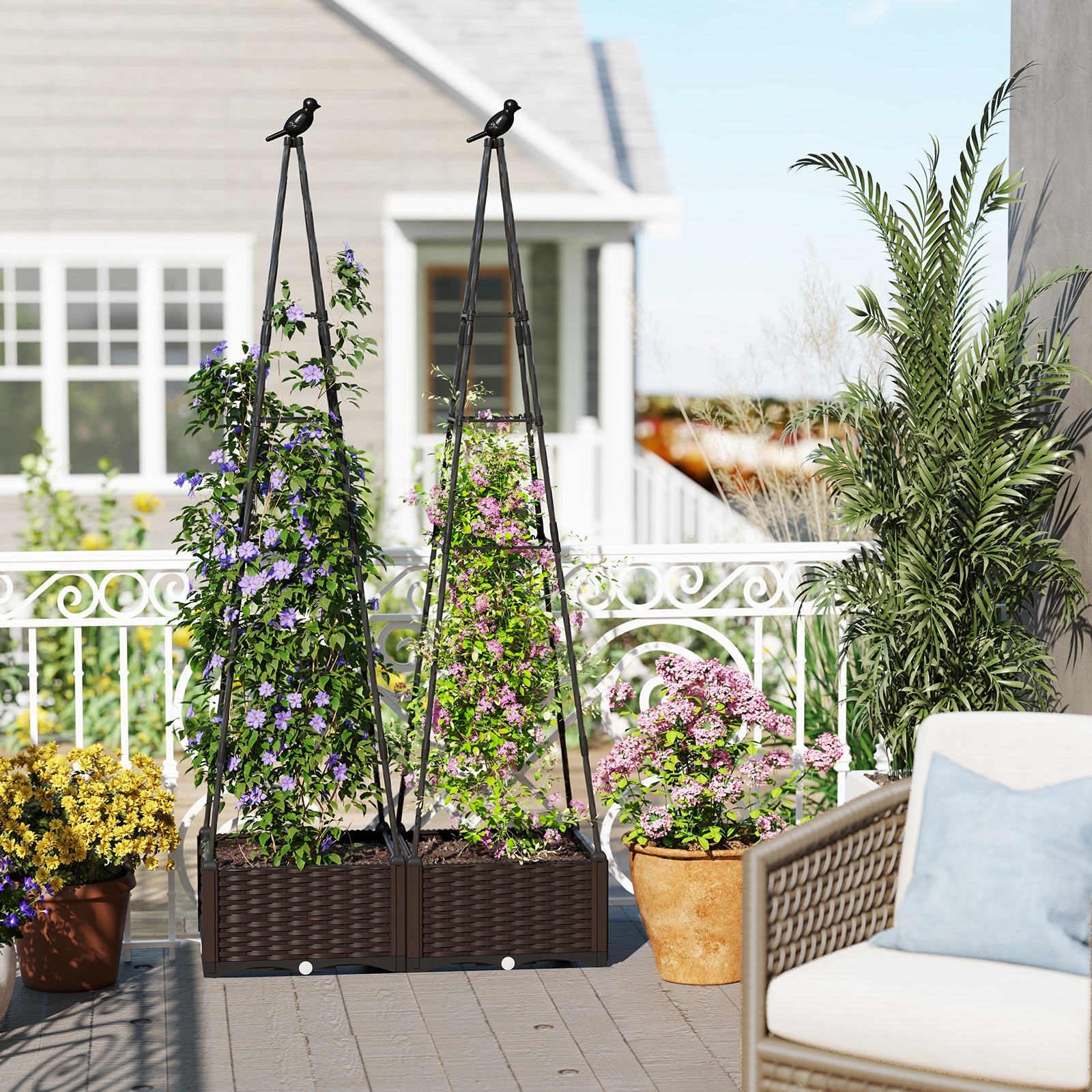 - Design multifonctionnel 2-en-1 avec jardinière et treillis de jardin obélisque pouvant être utilisés ensemble ou séparément.