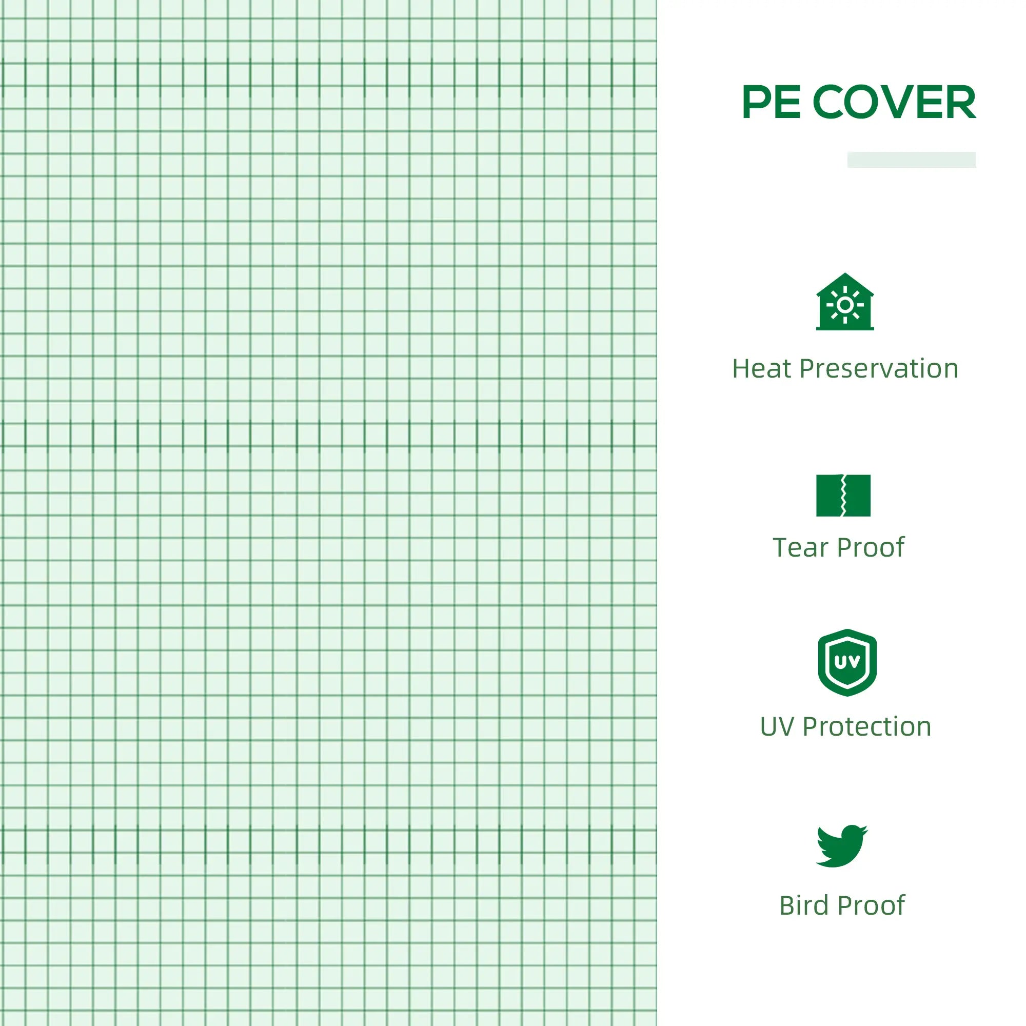 - Comprend une couverture en polyéthylène de haute qualité, résistante à l'eau avec un tissage en grille.