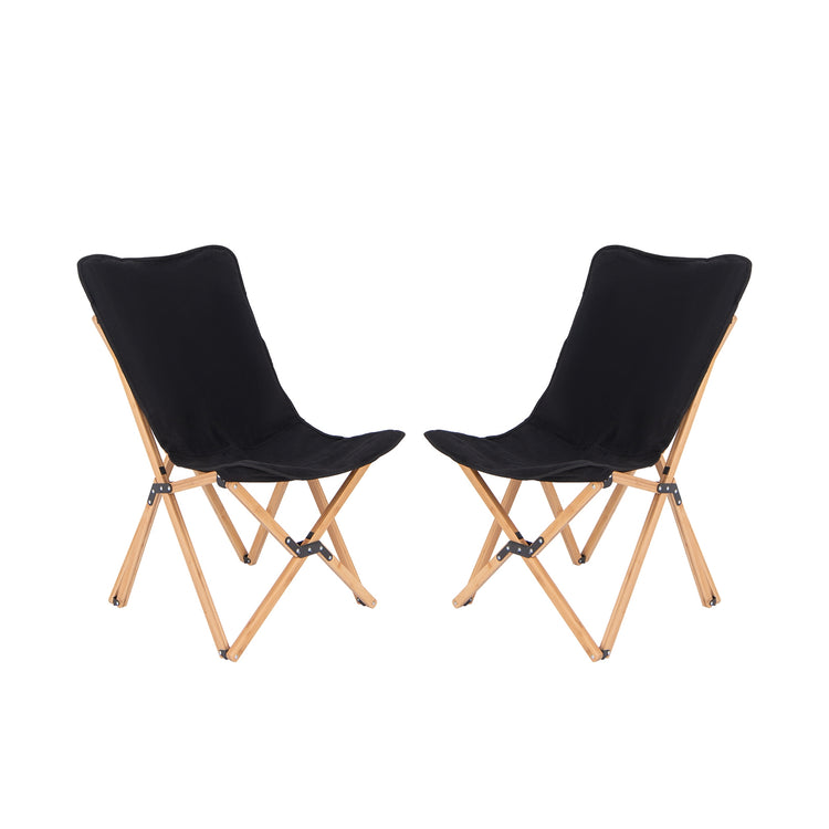 Set of 2 Bamboo Dorm Chair with Storage Pocket for Camping and Fishing, Black
