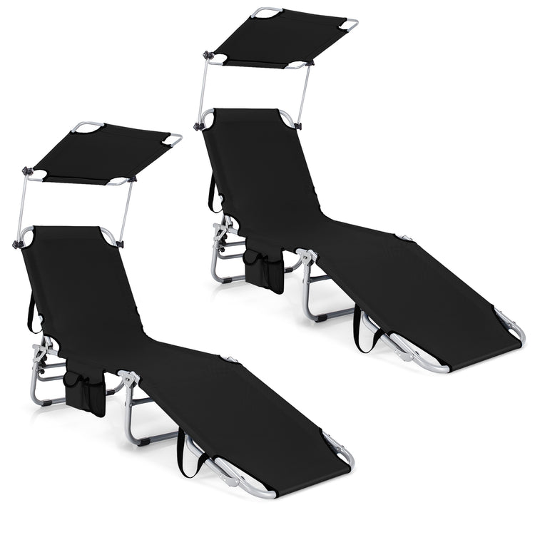 Ensemble de 2 fauteuils inclinables portables avec 5 positions réglables, noir