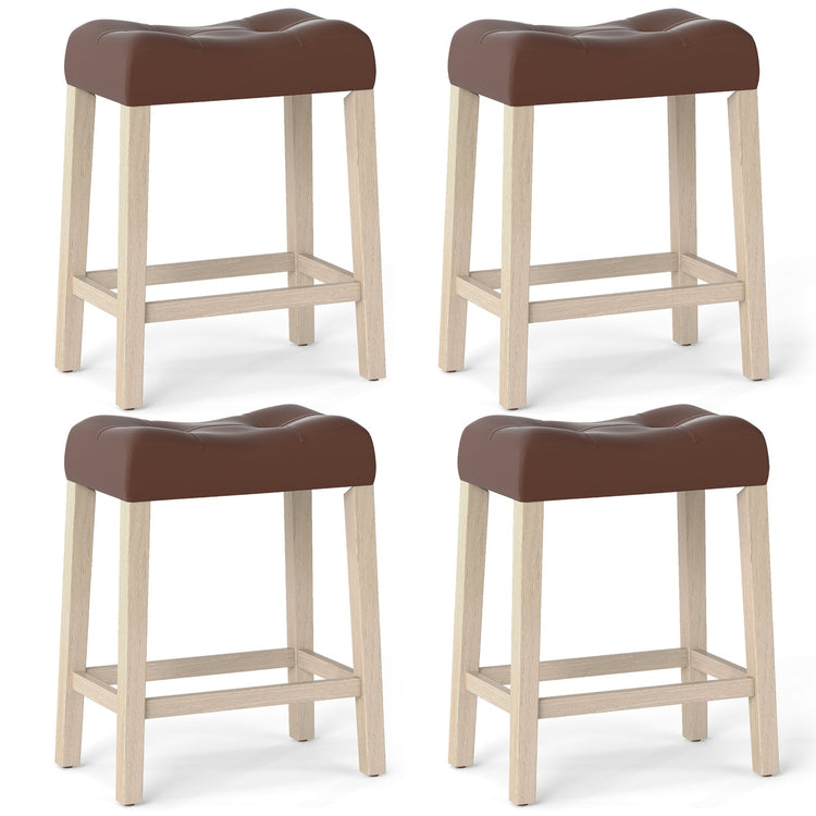 Set of 4 Upholstered Counter Height Bar Stool with Curved Saddle-Seat, Brown