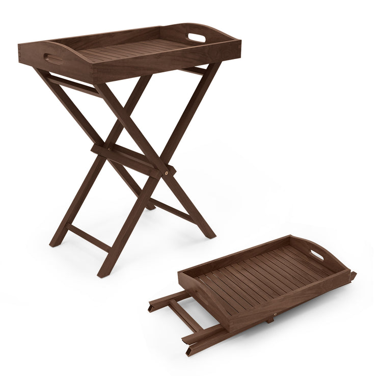 Solid Teak Wood Tray Table with Removable Tray Top for Patio and Garden