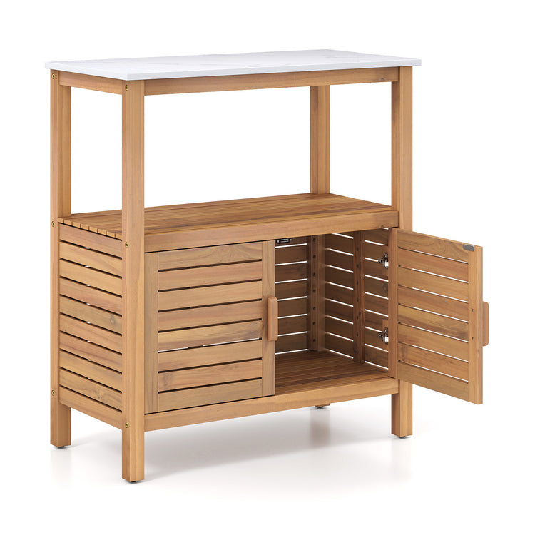 Table de rempotage en bois d'acacia, portes à persiennes, naturel