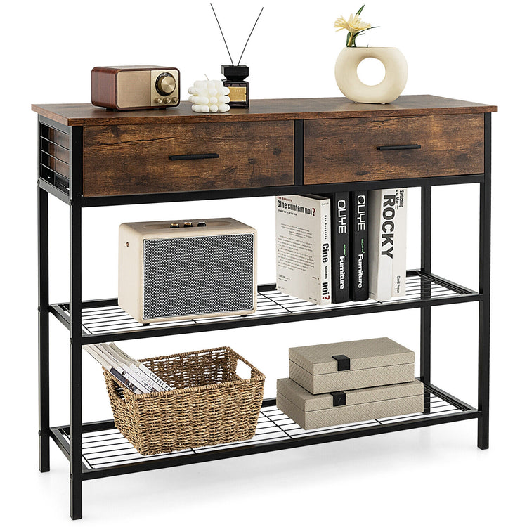 Table d'entrée de 39,5 pouces, 2 tiroirs, 2 étagères, Brun Rustique