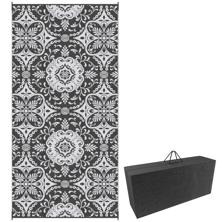 Tapis extérieur portable avec sac de transport, 9' x 18', imperméable, fleur blanche, gris