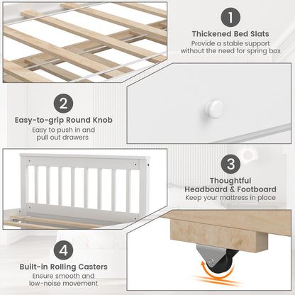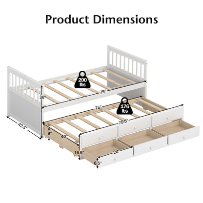 Twin Captain’s Bed with Trundle Bed with 3 Storage Drawers, White