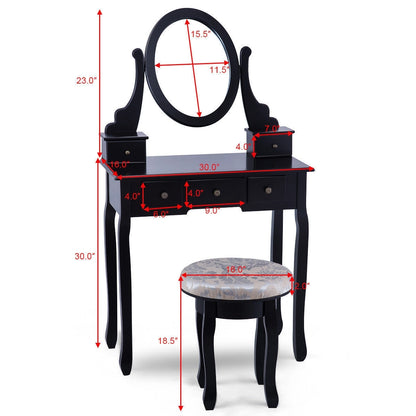 Vanity Makeup Table Set Bedroom Furniture with Padded Stool, Black
