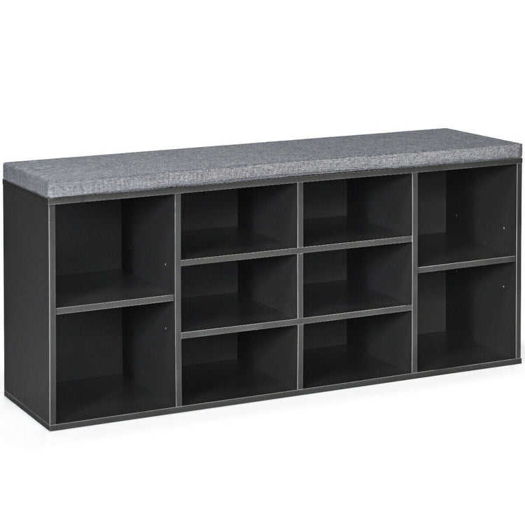 10-Cube Organizer Entryway Padded Shoe Storage Bench, Gray