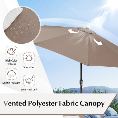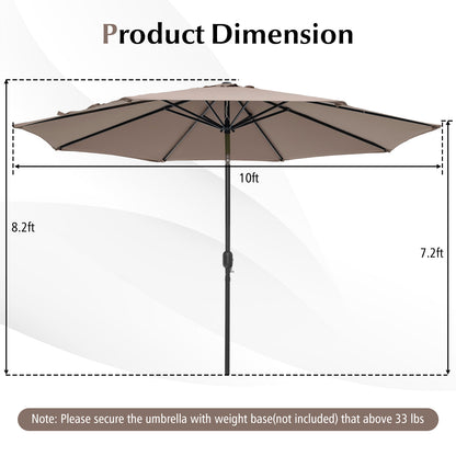 10 Feet Outdoor Patio Umbrella, Tilt Adjustment, Crank, Tan