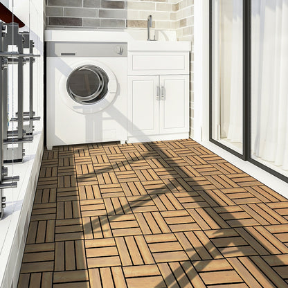 10 Pieces 12 x 12 Inch Acacia Wood Interlocking Tile Flooring, Brown