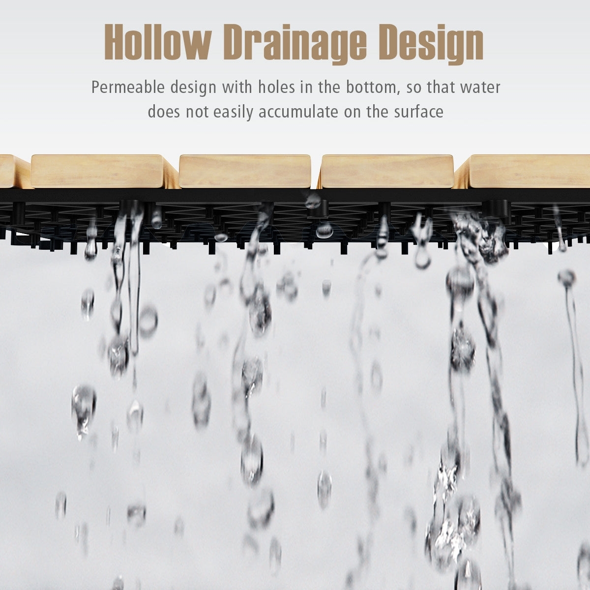 Solid Acacia Wood: Made of solid acacia wood, this flooring deck tiles feature premium crack, rot and wear resistance to withstand the fluctuating weather while maintaining its appearance and integrity at same time. And the smooth and anti-slip surface, burr-free effectively protects your feet.