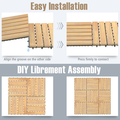 Made of solid acacia wood, these 10 pcs weather-resistant and highly durable decking tiles can have a long service life.