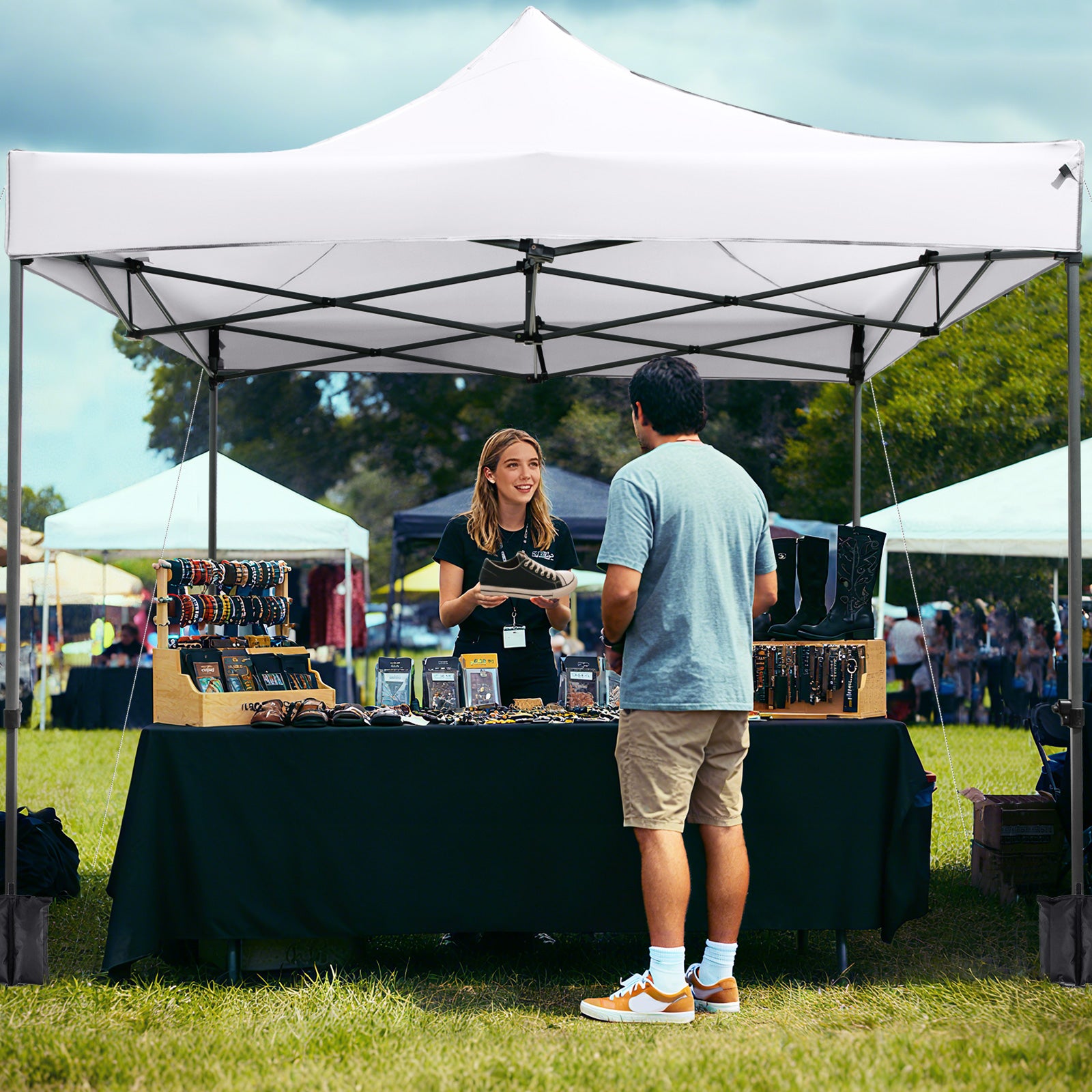 Wide Application: With 3 selectable height settings, the heavy-duty outdoor canopy adapts to suit various preferences and occasions. It's perfectly suited for backyard BBQs, days at the beach, outdoor picnics, sporting events, or even as a booth at flea markets.