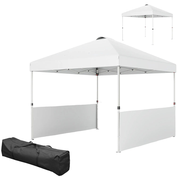 10' x 10' Pop Up Canopy Tent, 2 Half Sidewalls, UV50+, Adjustable, White