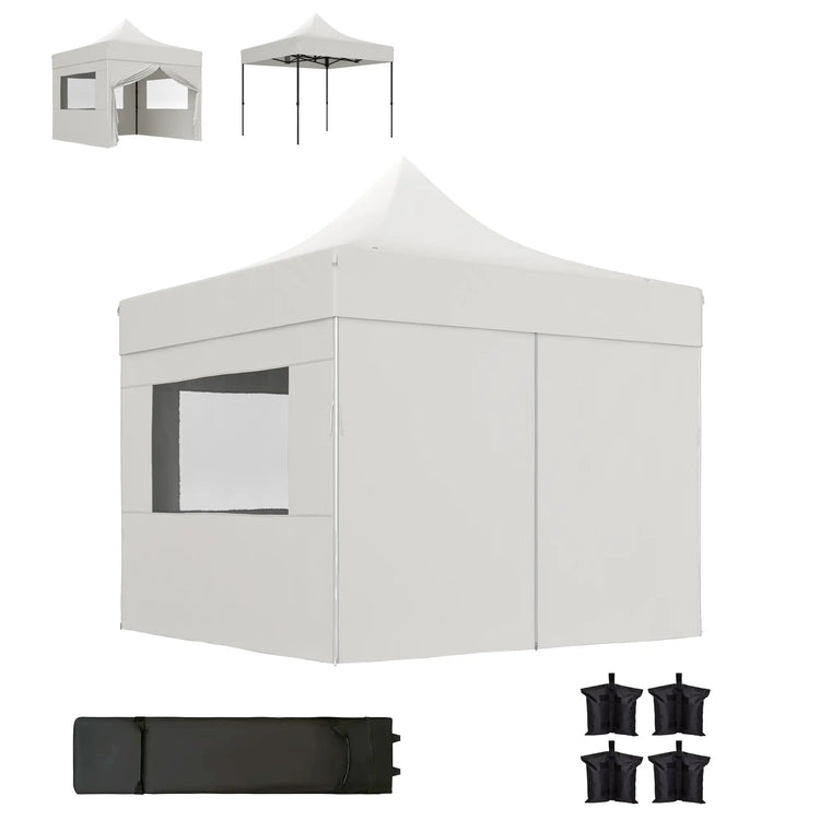 10' x 10' Pop Up Canopy Tent, Sidewalls, Adjustable Height, Wheeled Bag