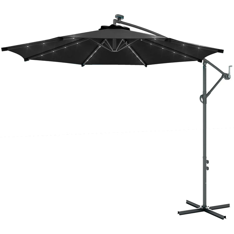 10ft Banana Umbrella, Solar Lights, Adjustable Angle, Patio Backyard, Black