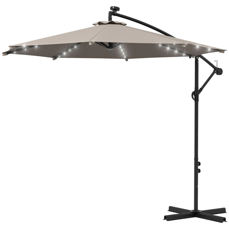 10ft Outdoor Cantilever Umbrella, Solar Lights, Adjustable Angle, Khaki