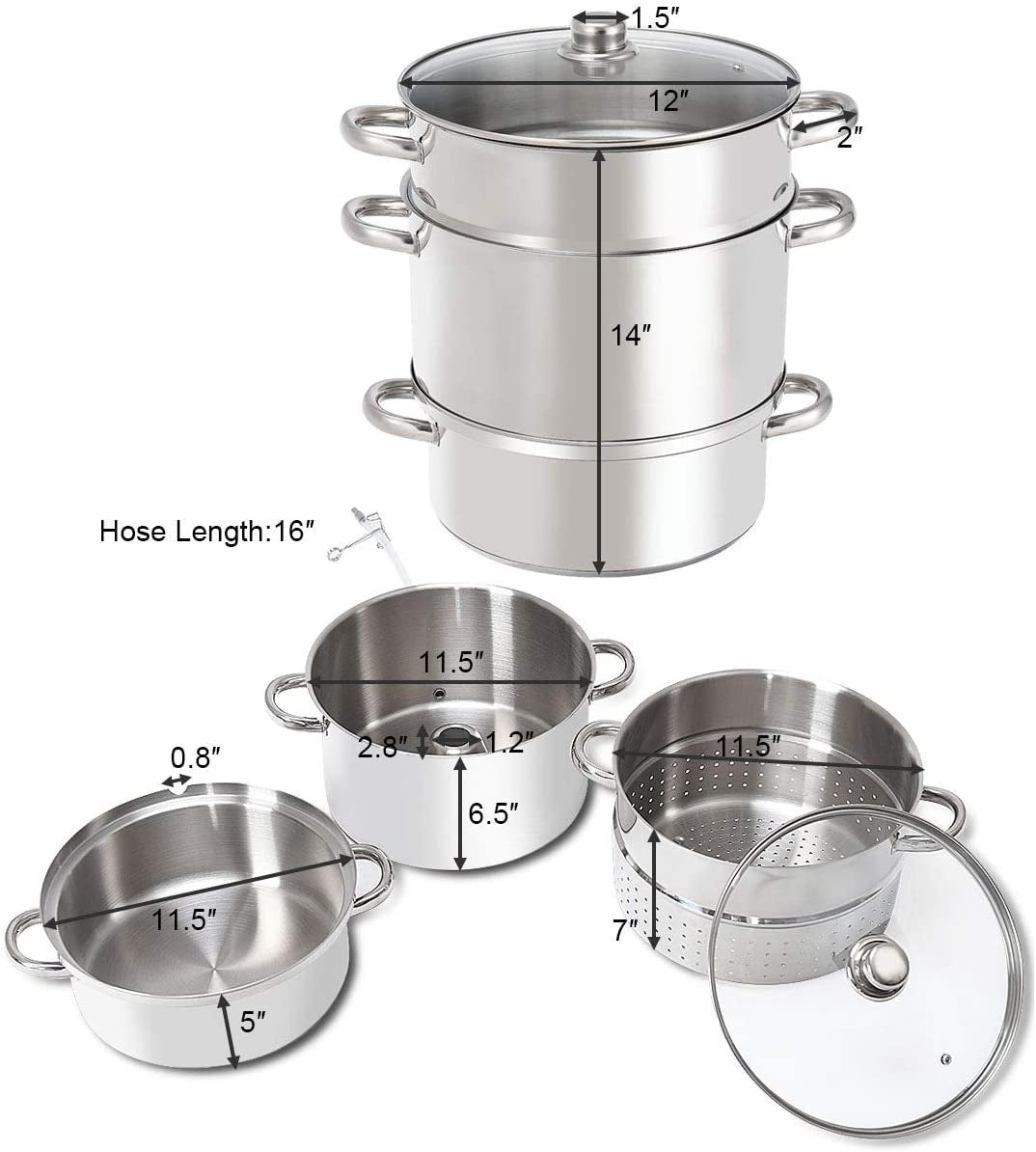 11-Quart Stainless Steel Fruit Juicer Steamer, Silver