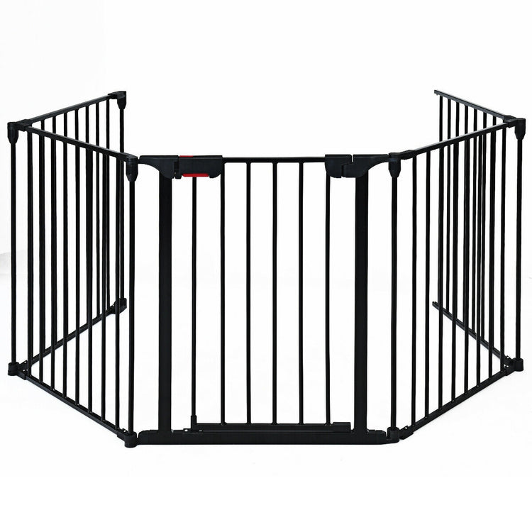 115 Inch, 5 Panel Adjustable Fireplace Fence, Black
