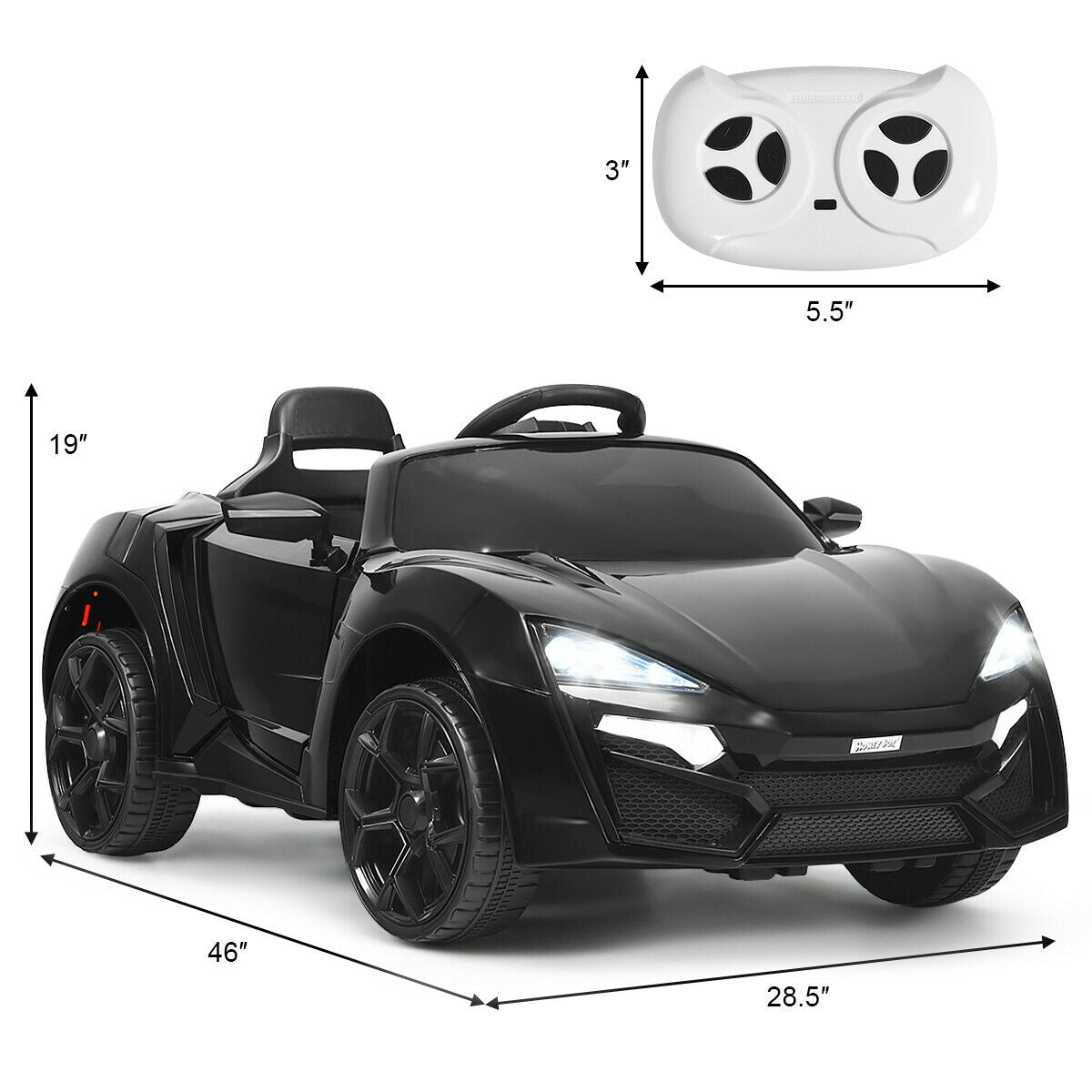 12V 2.4G RC Electric Vehicle with Lights, Black