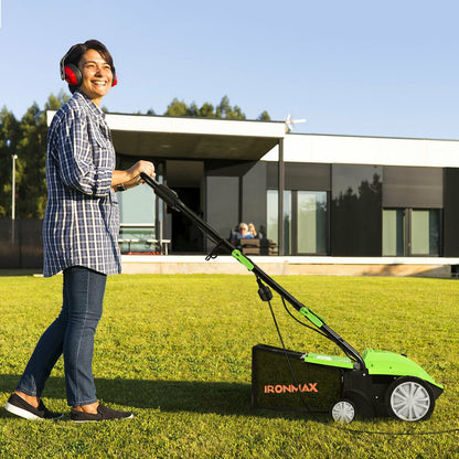 Corded Electric Scarifier: The powerful 12-amp motor rakes 13” wide to effectively solve the problems of trimming and scarifying. In addition, an 11-gallon grass collection bag can gather lawn debris automatically to save you time and energy.