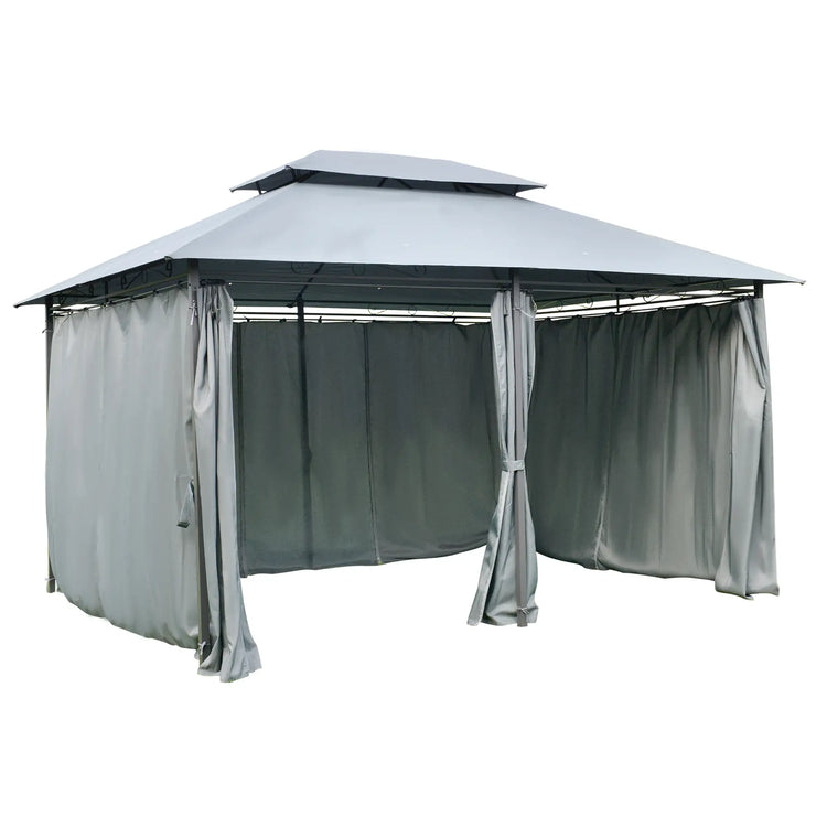 13'L x 10'W x 8.7'H Patio Gazebo, 2-Tiers Garden Canopy, Grey