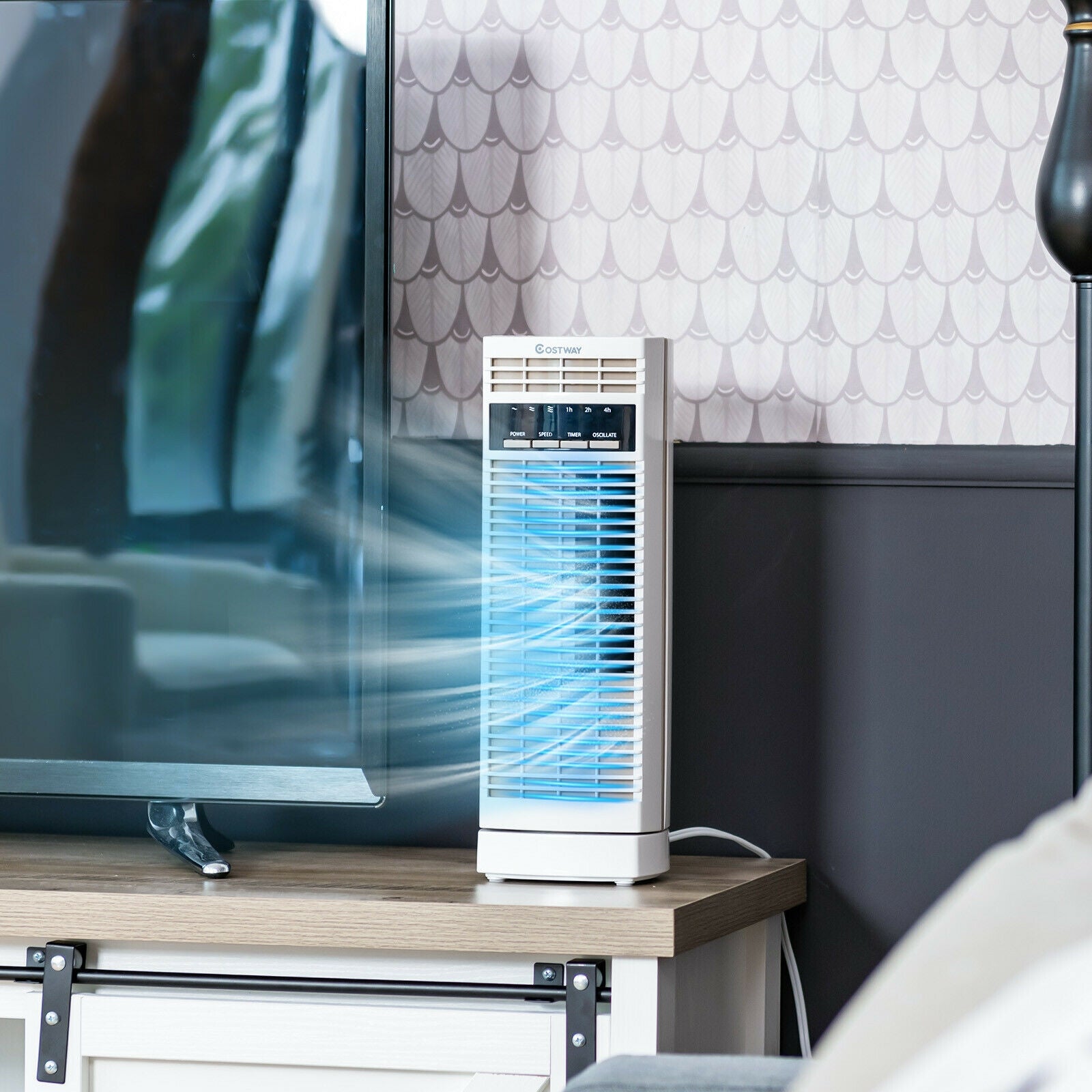 Wide-angle Oscillation: The tower fan can rotate from side to side with a range of 0-90 degrees, which can distribute airflow to wherever you need. And constant wiggling up and down accelerates air circulation to cool your entire room in no time.