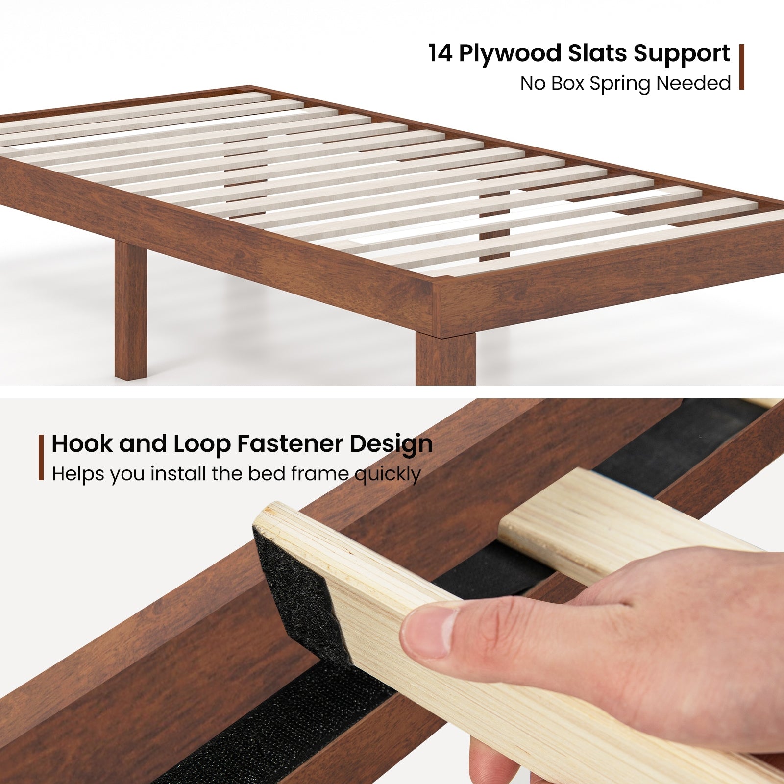 14 Inch Twin Size Platform Bed Frame, Wood Slat Support, Walnut