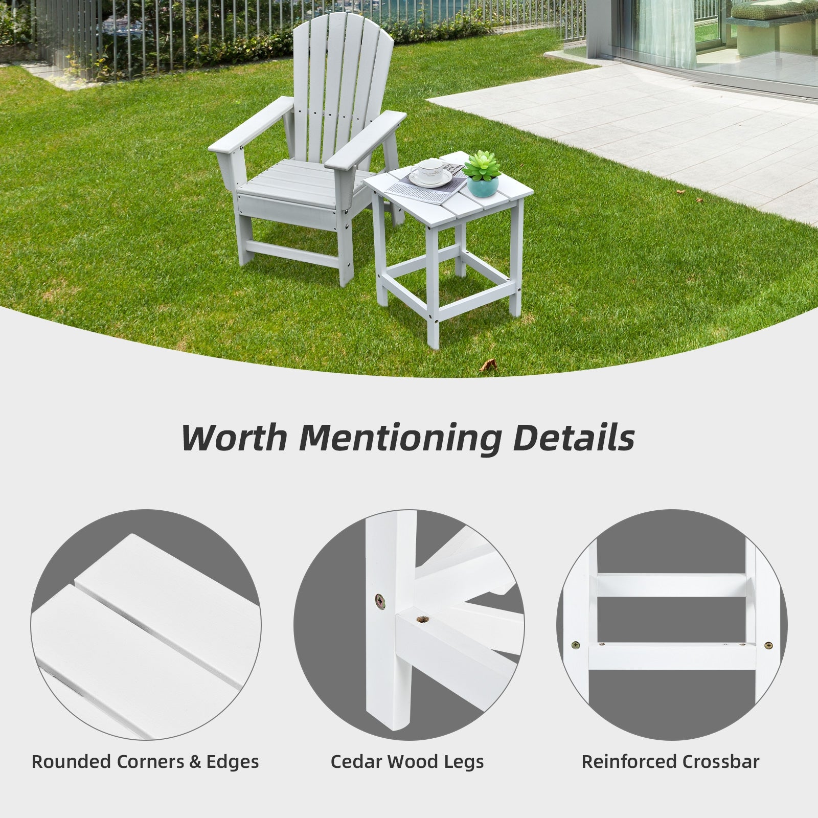 15 Inch Patio Square Wooden Slat End Side Coffee Table for Garden, White