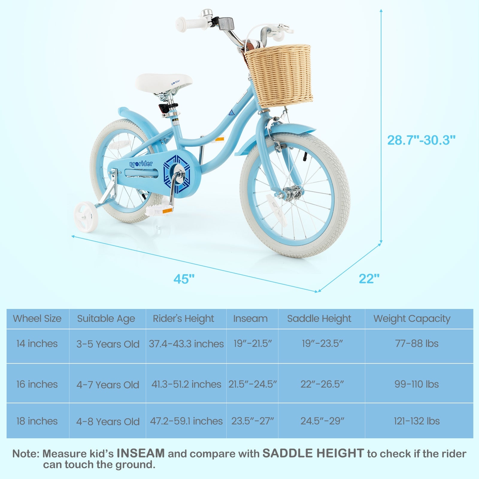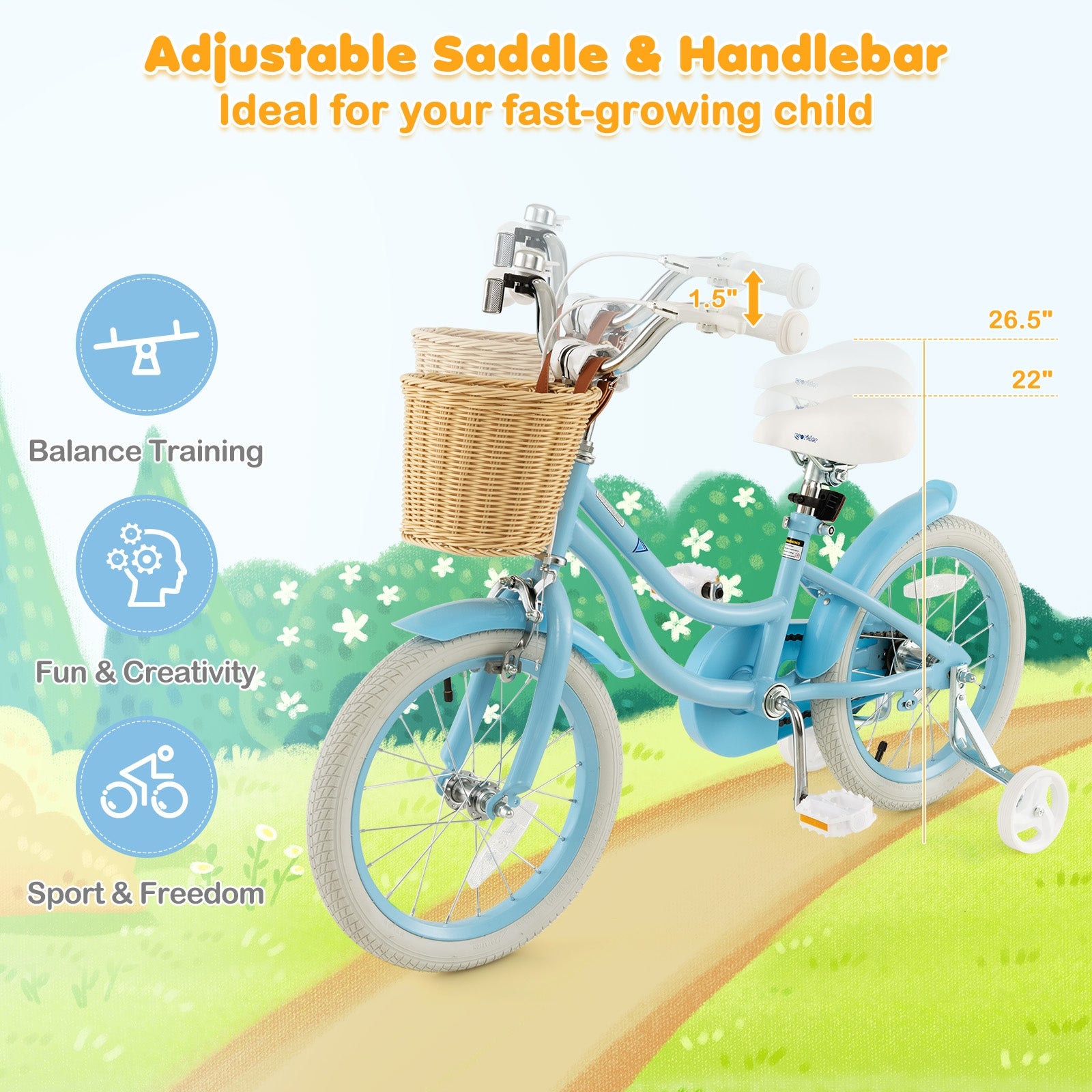 - Adjustable saddle and handlebars (within 1.6 inches) for fast-growing children.