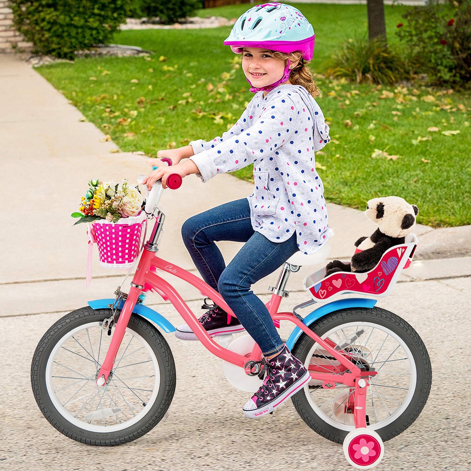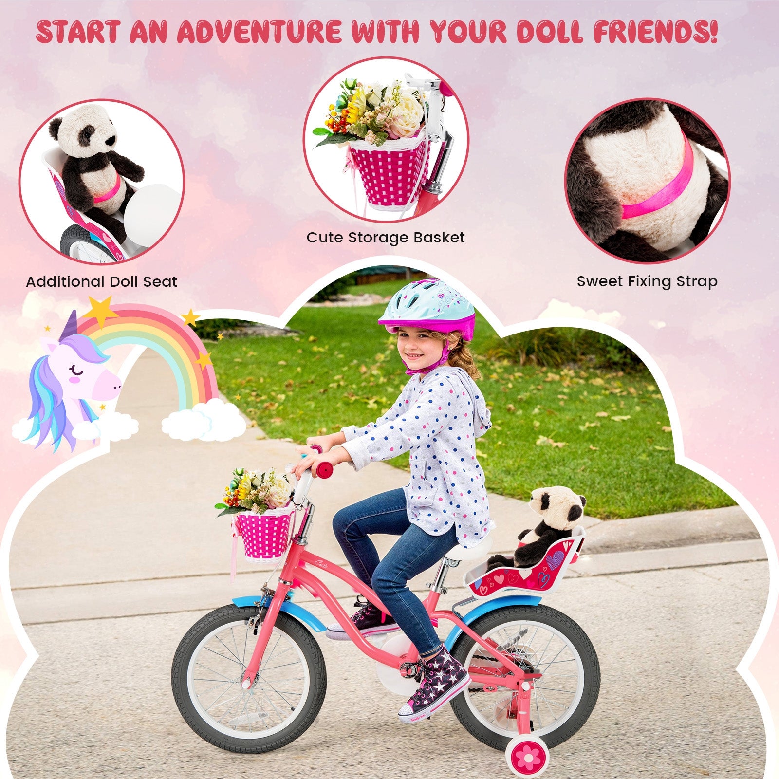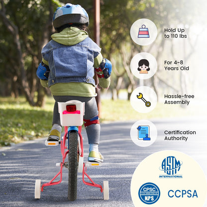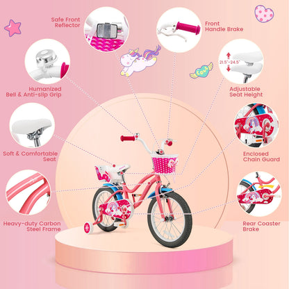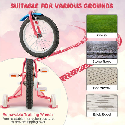 16 Inch Kids Bike with Training Wheels and Storage Basket-16 inches, Pink