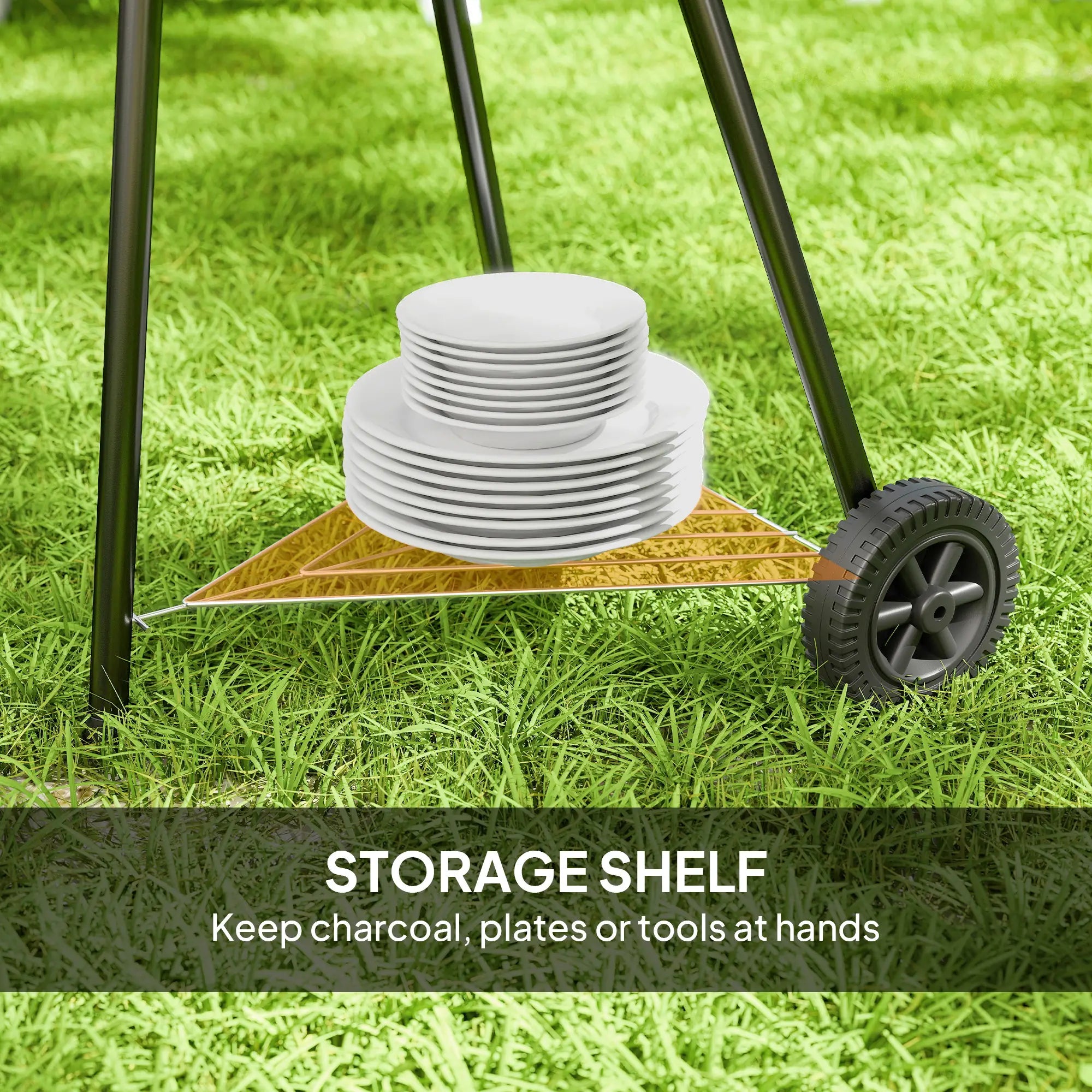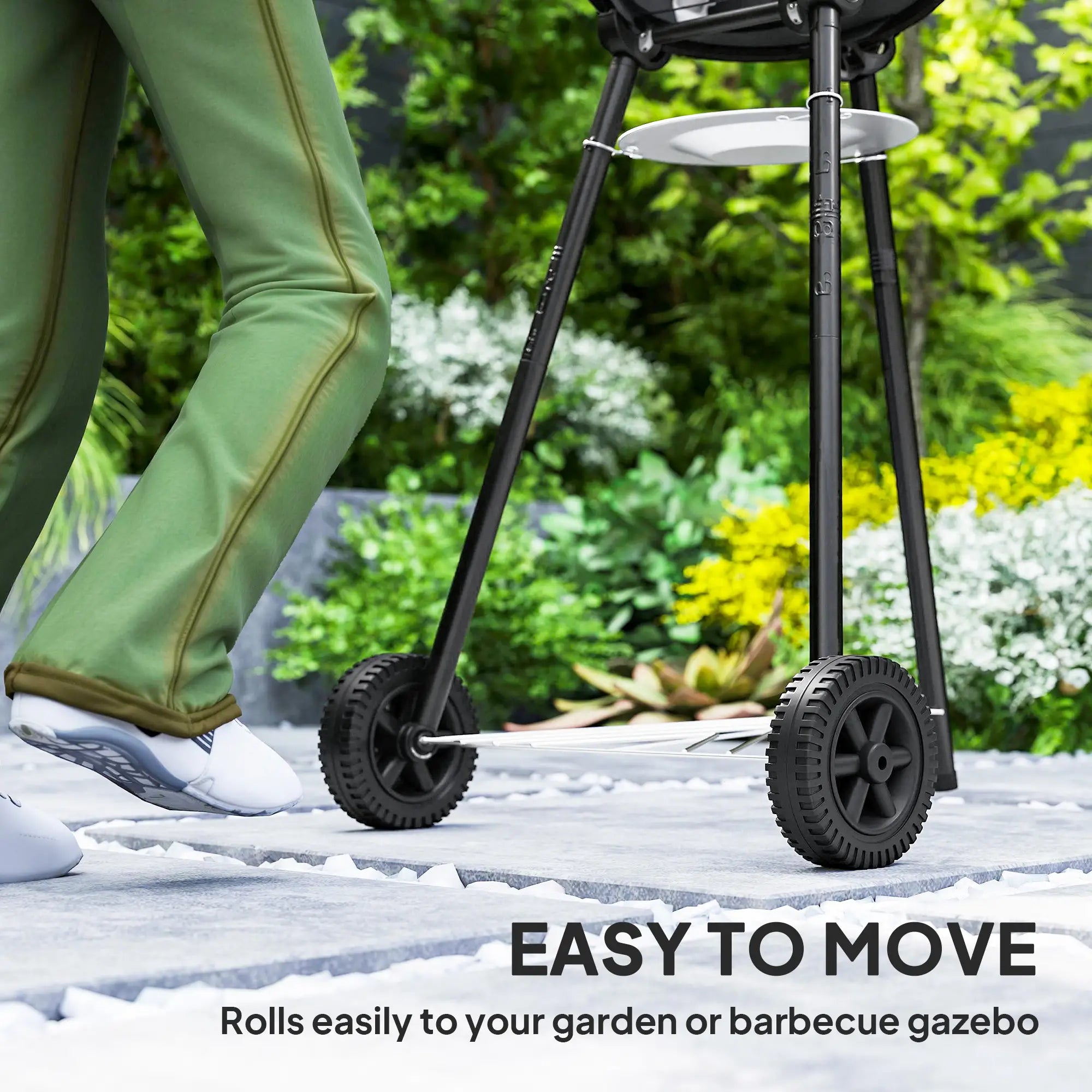 17" Charcoal BBQ Grill With Shelf, Ash Catcher, Wheels, Black