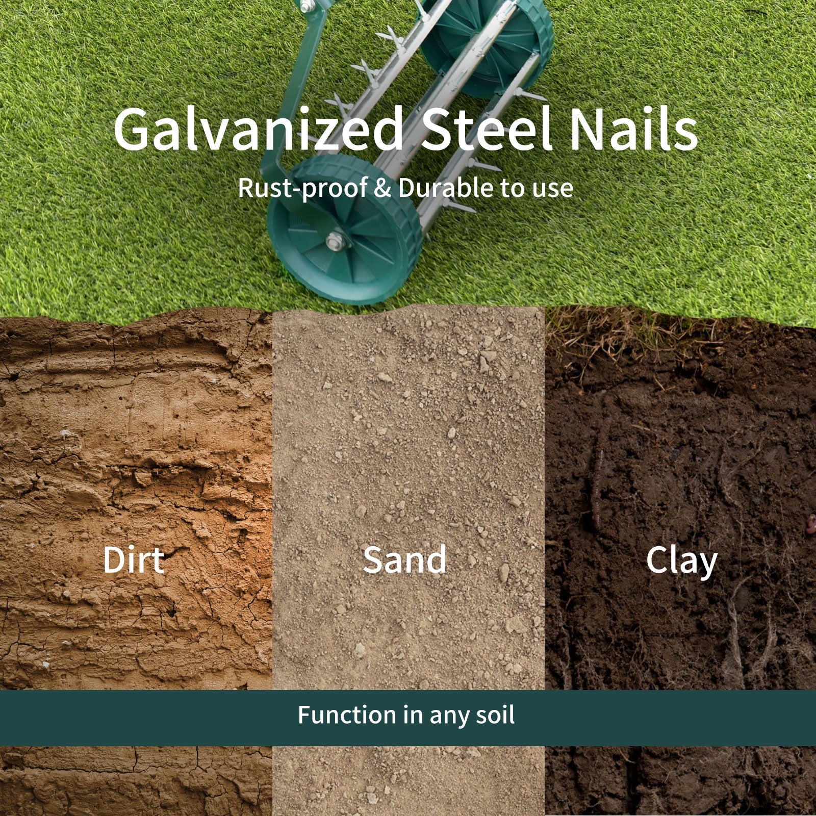 18 Inch Rolling Lawn Aerator with Anti-slip Handle and Tine Spikes, Green