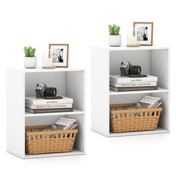 2-Cube Bookcase Set of 2 Floor Standing Open Bookshelf w/ 5-Position Adjustable Shelf, White