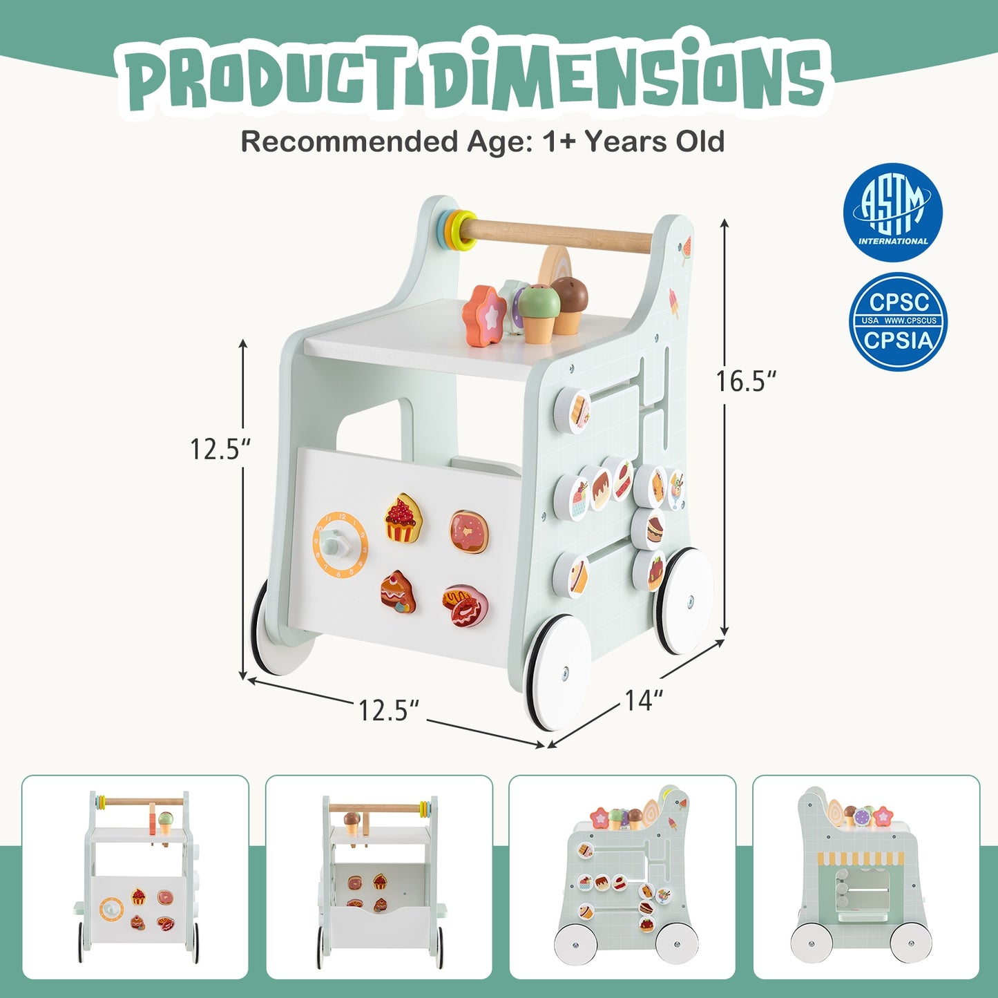 2-in-1 Baby Walker with Storage and Ice Creams for 1+ Years Old, Light Green