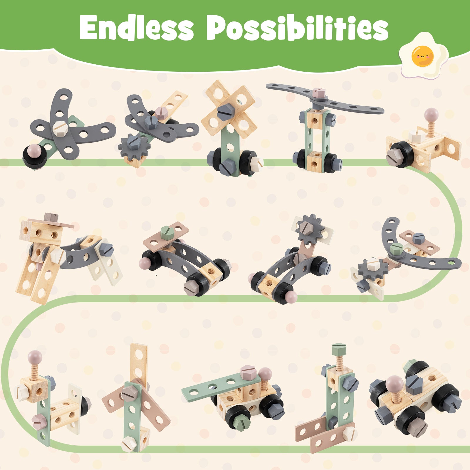 • Unlimited installation options free imagination for little engineers• Immerse in handcrafting at the workbench with abundant accessories