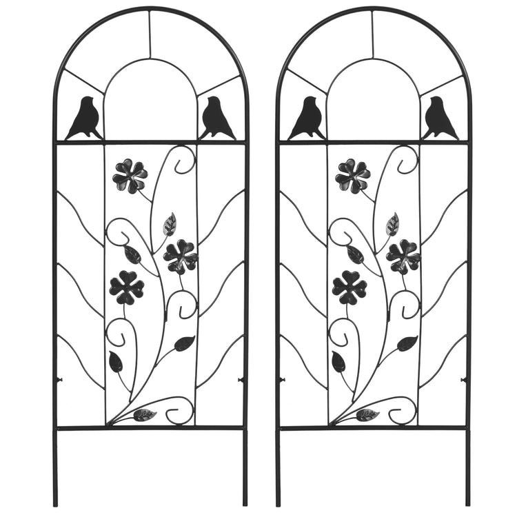 2 Pack Metal Garden Trellis, Birds and Leaves Grid Panels, 39" Tall