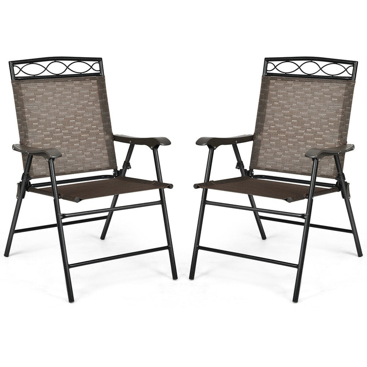 2 Patio Folding Chairs, Portable Dining Chair Set, Brown