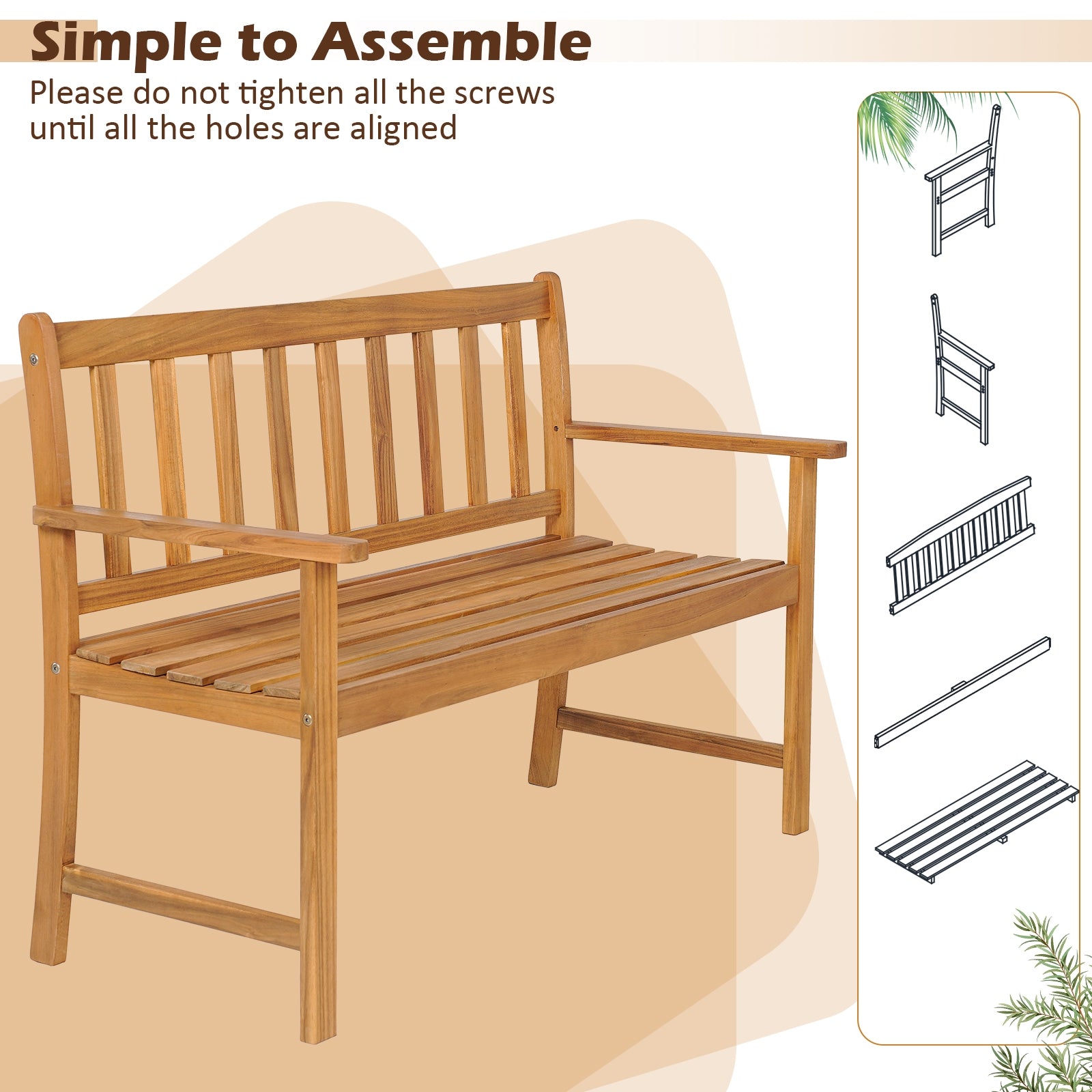 2-Person Outdoor Acacia Wood Bench with Backrest, Natural