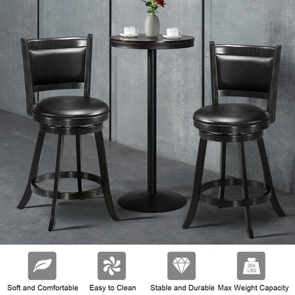 2 Pieces 24 Inch Swivel Counter Stool Dining Chair Upholstered Seat, Black