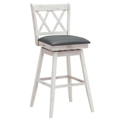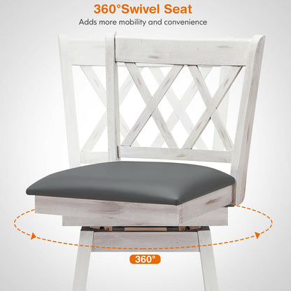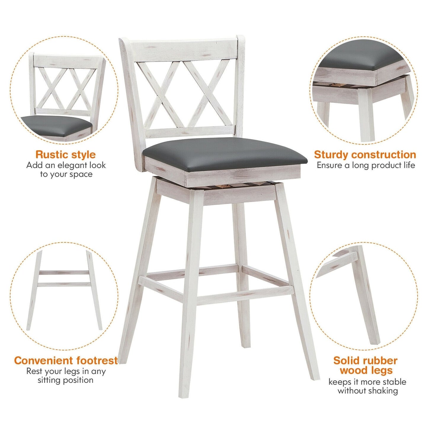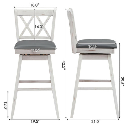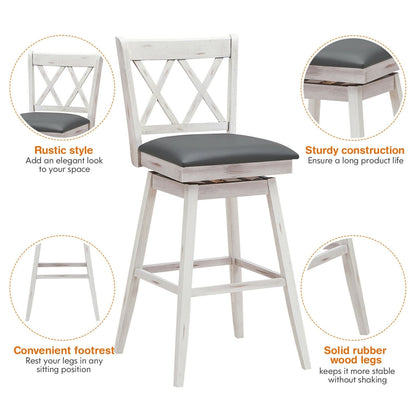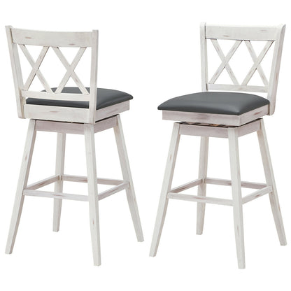 2 Pieces 29 Inches Swivel Counter Height Barstool Set with Rubber Wood Legs, White