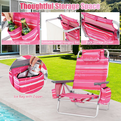 Folding Backpack Beach Chair With Pillow, 2 Pieces, Red & White